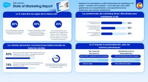 Salesforce, líder mundial en CRM basado en IA, ha publicado la décima edición del State of Marketing en el que se pone de manifiesto que los clientes actuales quieren que las interacciones con las marcas sean como interactuar con un LLM: instantáneas, conversacionales y personalizadas. Sin embargo, el 74% de los profesionales del marketing en España siguen teniendo dificultades para responder con rapidez a los clientes y el 83% confiesa que lleva a cabo campañas genéricas, según 150 profesionales del marketing de España que fueron encuestados como parte de la muestra global de 4500 personas del informe.